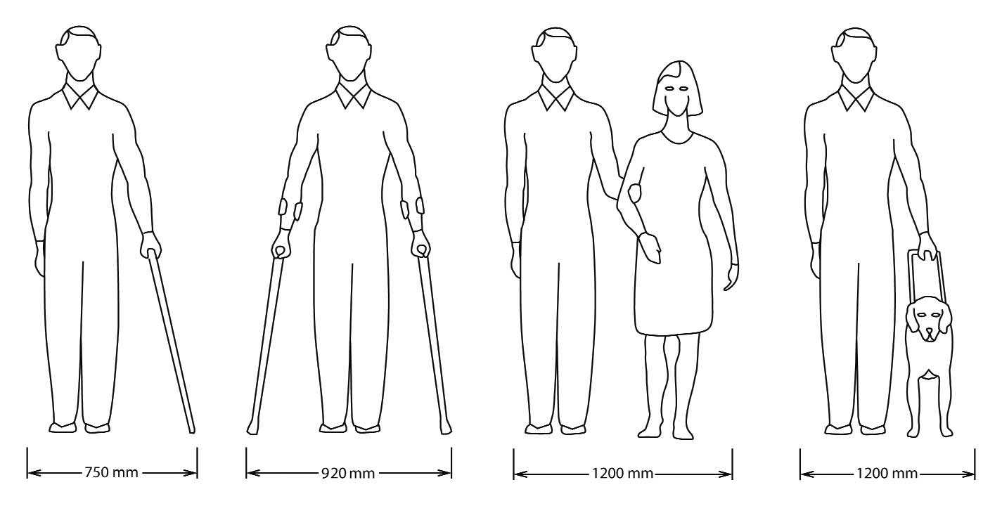 - An individual with a guide dog: 1,200 mm