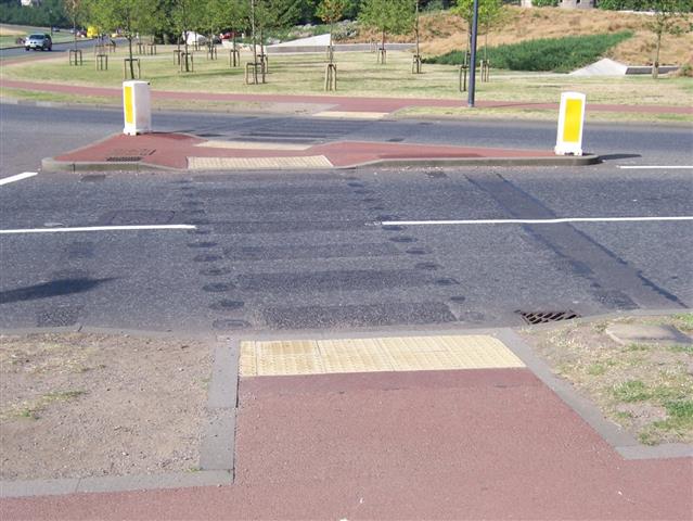 Autant que possible, la voie de passage d’un côté à l’autre d’une rue doit être directe, sans îlot de refuge surélevé au milieu. Les personnes touchées par la cécité pourraient se croire rendues de l’autre côté de la rue alors qu’elles ont en fait atteint un îlot de refuge.