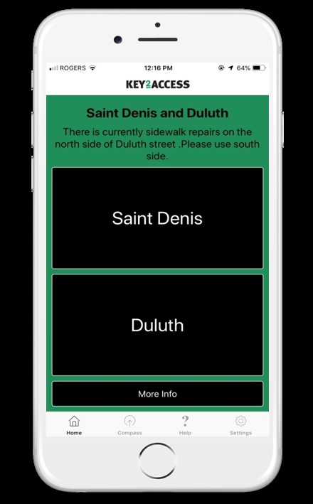 Personal hand-held devices should be freely available to pedestrians requiring these adaptations. The smart phone option must be compatible with text to speech or screen magnification assistive technology, native to both iOS and Android operating systems.