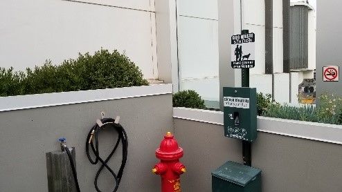 At airports, rail or ferry terminals where secured areas exist, travelers with guide dogs should have access to safe, well maintained spaces to relieve their guide dog. These areas should be equipped with waste receptacles, hand washing facilities, and a means by which surfaces can be easily cleaned.