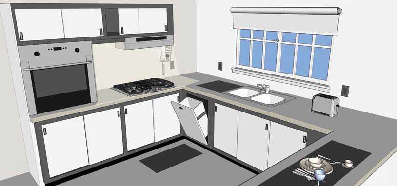 Kitchens and coffee stations should be made accessible for people impacted by blindness. The use of colour contrast can help people with low vision to locate surfaces, controls and appliances.