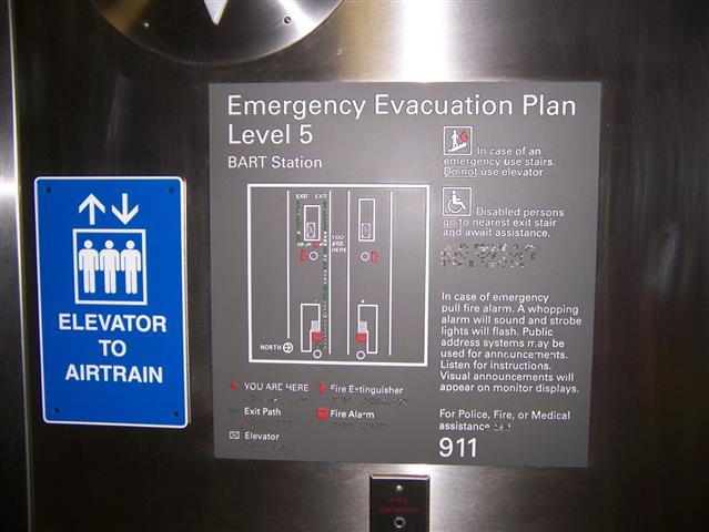 Illuminated exit signage should be used to assist wayfinding, especially where an exit route changes direction or joins another route. All print and tactile signage used to direct people to exit points should be located at exit route junctions and exit points as needed.